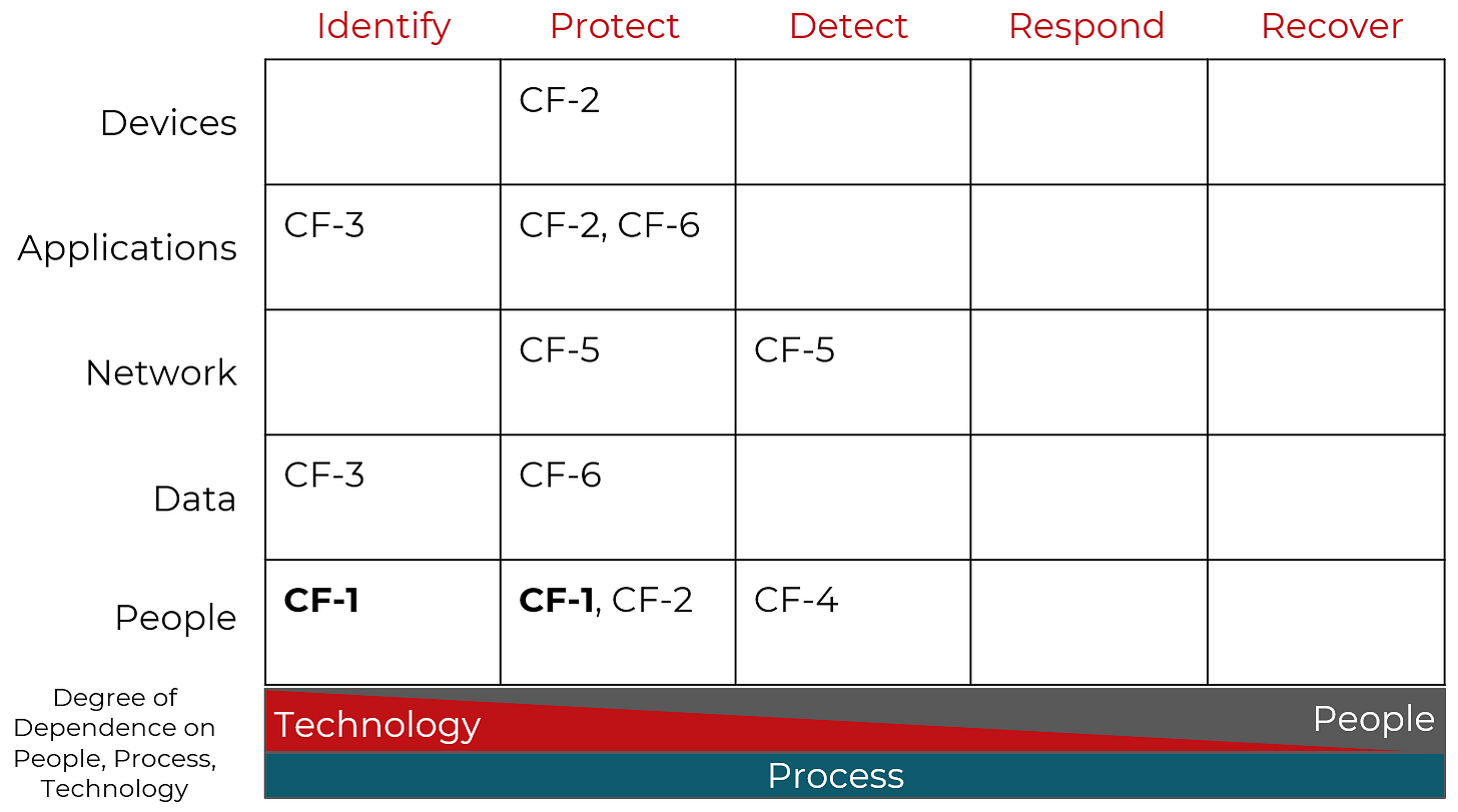 Using Sounil Yu’s Cyber Defense Matrix (CDM), which is based on NIST CSF functions and assets. Read more about the CDM here.