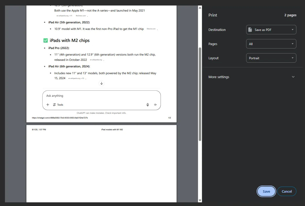 https:// chatgpt com/ share/ 688cef07-8cac-8004-a374-b87cfd6bdea4 (yes, this is a working link if you put it all together - it's just me researching used iPads, go nuts with it)