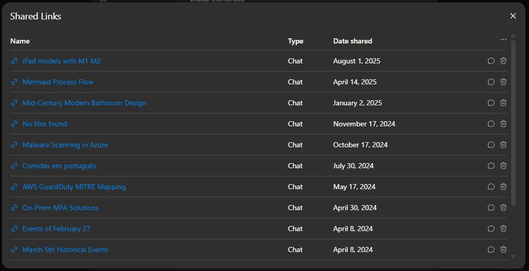 Shared ChatGPT chats are showing up in search engines, with no option to disallow search engine indexing. This is the equivalent of "anyone with the link" sharing settings in Google Docs/Sheets or Microsoft 365. No other service I’m aware of defaults to allowing data shared in this way to be indexed by search engines, so this news likely comes as a surprise to most ChatGPT customers.